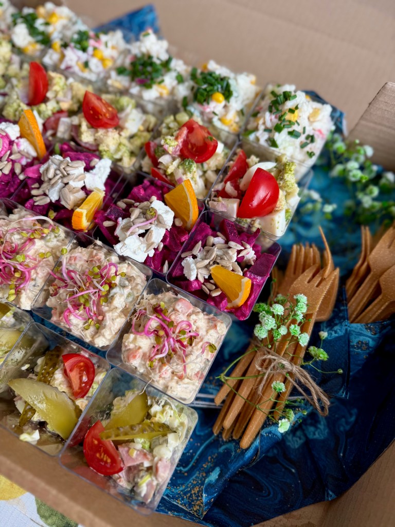 Gotowe zestawy cateringowe ułatwiają organizację i pozwalają skupić się na celebrowaniu wyjątkowego momentu, zamiast na przygotowaniach w kuchni.