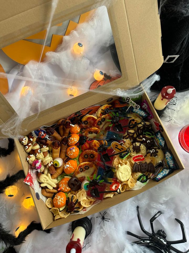 Nieważne, czy planujesz spotkanie z przyjaciółmi, rodziną, czy imprezę w biurze – nasz Halloweenowy Box dostarczy Ci nie tylko pysznych, ale też upiornie efektownych przekąsek!